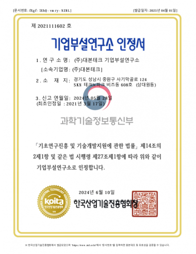 Branch office : Room 608 in Biz-dong, 124 SKN Techno Park, Sagimakgol-ro, Jungwon-gu, Seongnam-si, Gyeonggi-do Province, Korea