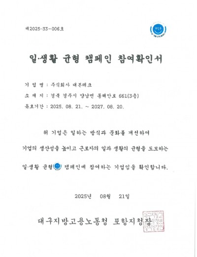 Company Name: Daebon Tech   CEO Sang-hyeop Lee